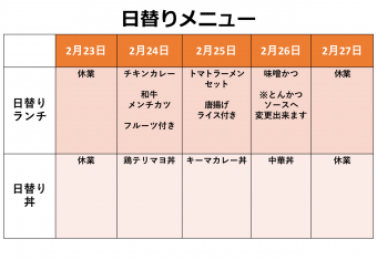 【学食】日替わりメニューを更新しました!2/24(火)-2/27(金)