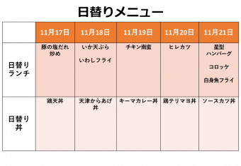 【学食】日替わりメニューを更新しました!11/17(月)-11/21(金)