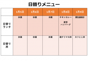 【学食】日替わりメニューを更新しました!1/8(木)-1/9(金)