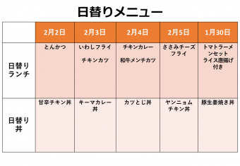 【学食】日替わりメニューを更新しました!2/2(月)-2/6(金)
