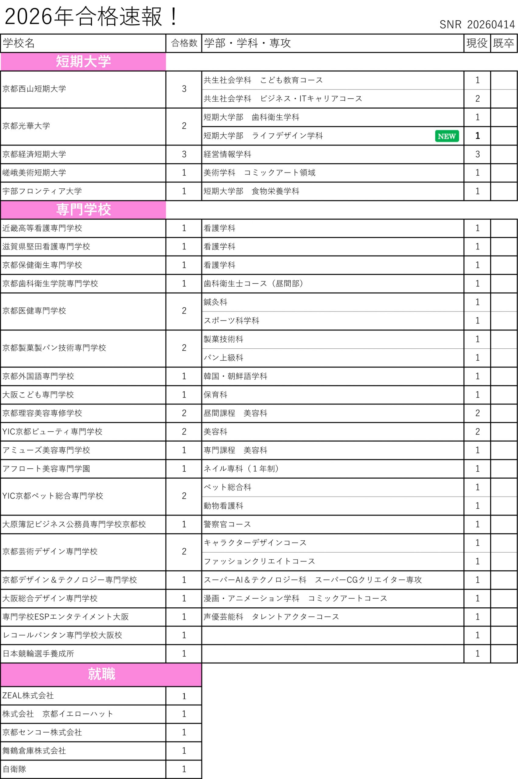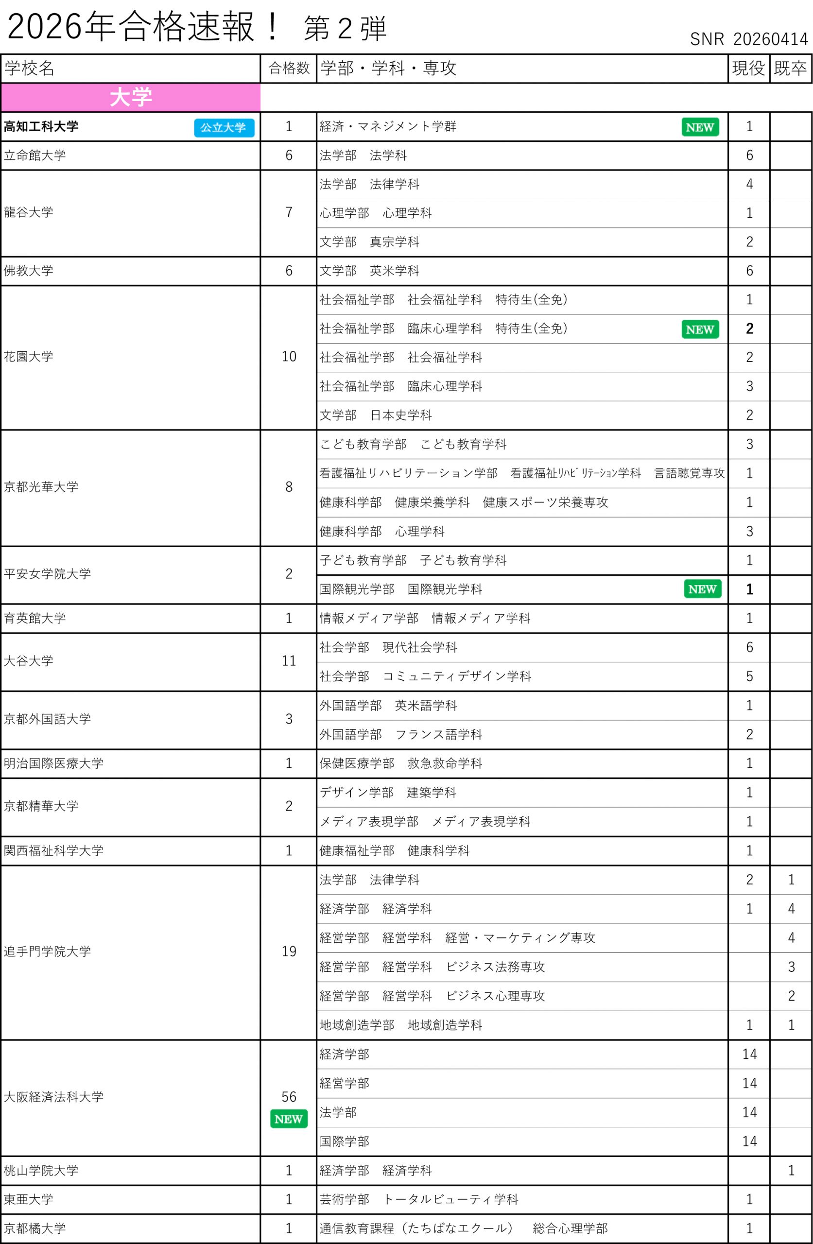 2026年合格速報!(2026年3月31日現在)~2025年度進路実績に向けて~